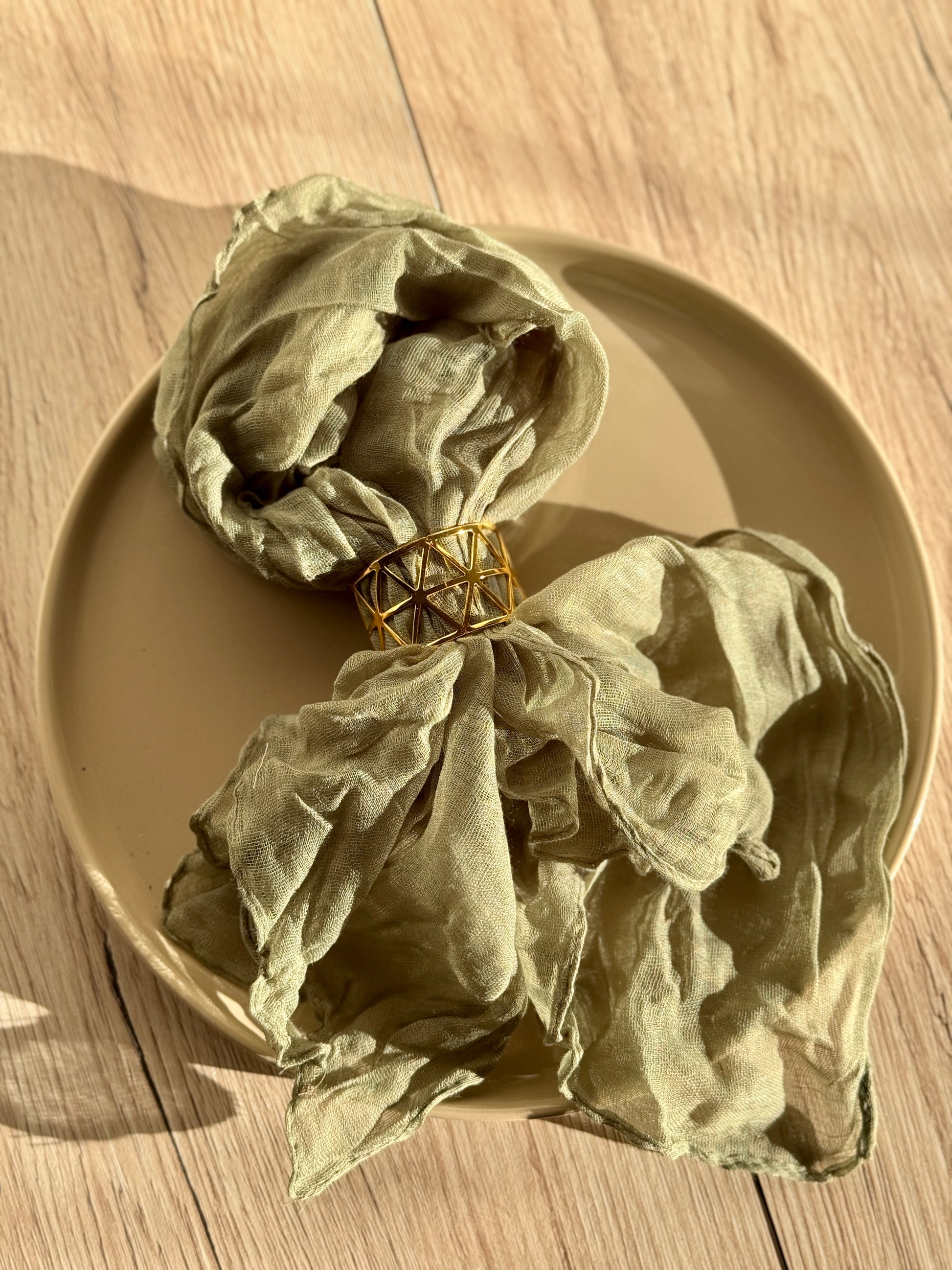 Unsere stilvollen Stoffservietten „Amira“ in Salbeigrün bringen natürliche Eleganz und einen frischen, modernen Look auf deine Festtafel. Sie passen perfekt zu Boho- und Naturkonzepten und harmonieren ideal mit Holzelementen und grüner Floristik.