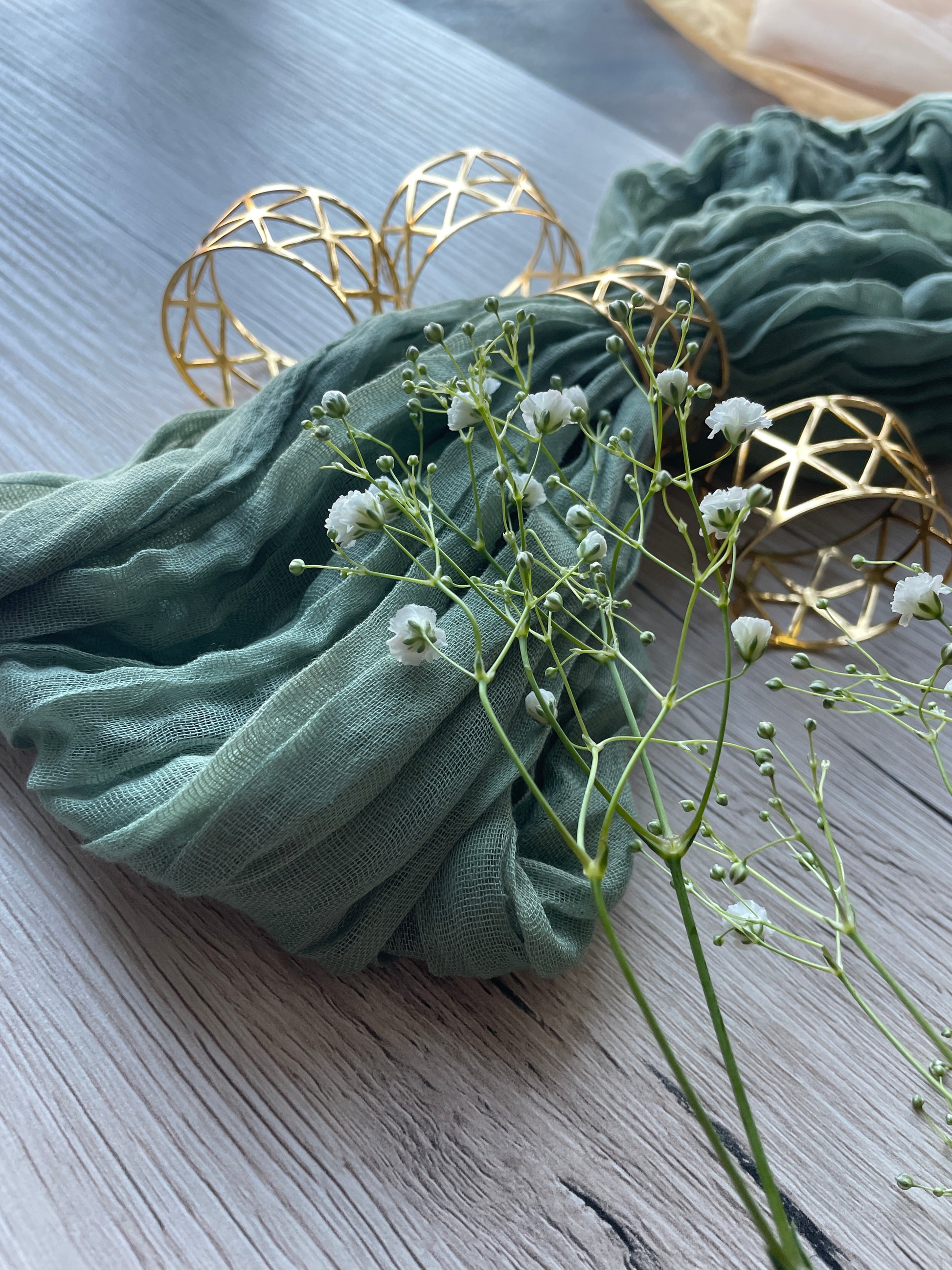 Unsere stilvollen Tischläufer in Salbeigrün bringen Natürlichkeit und Frische auf dein Event. Die etwas längere Variante sorgt für flexible Einsatzmöglichkeiten.