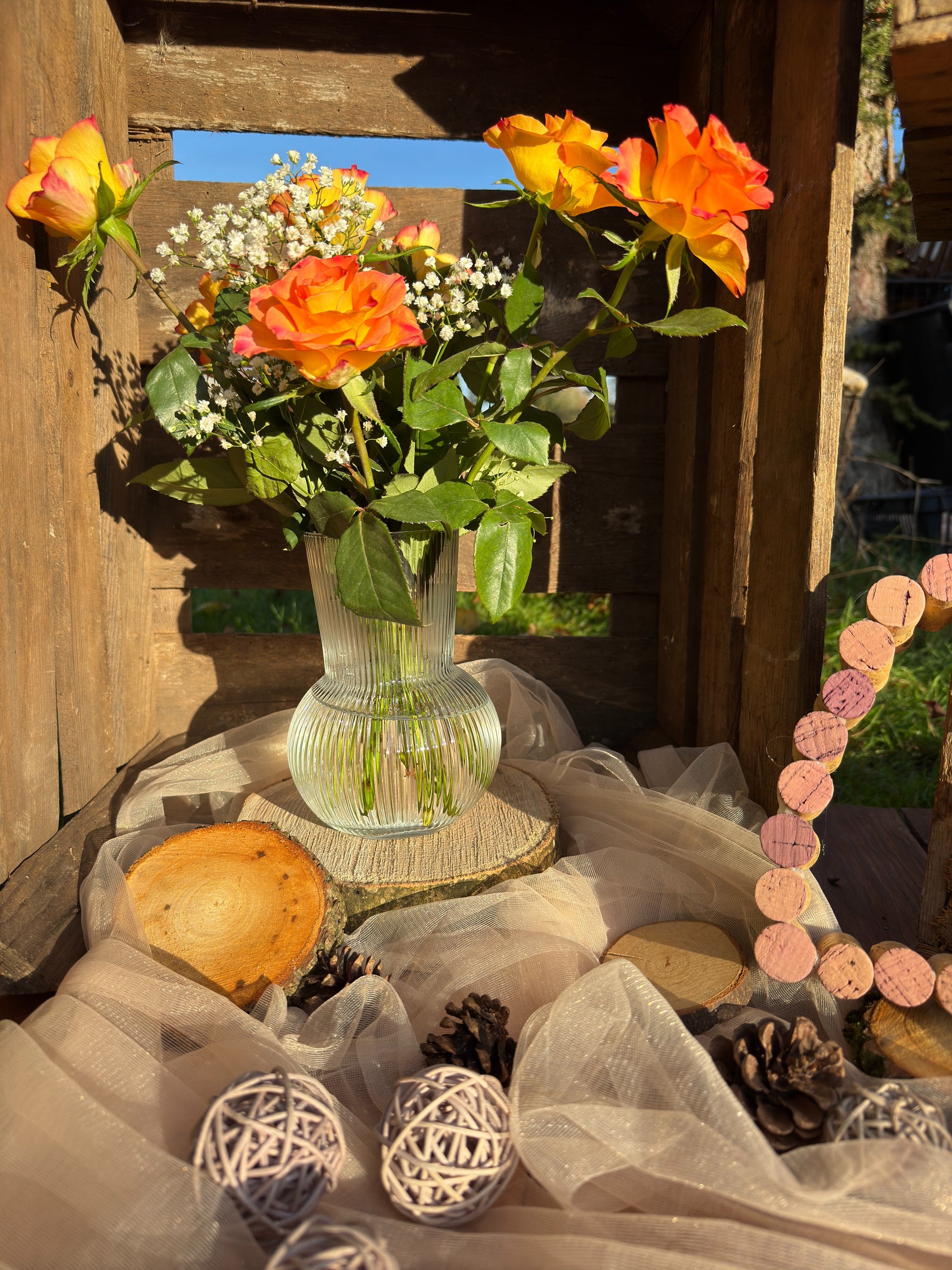 Die Vase „Amara“ ist vielseitig einsetzbar – von eleganten Hochzeiten bis hin zu gemütlichen Feiern – und verleiht jedem Arrangement einen stilvollen Rahmen.