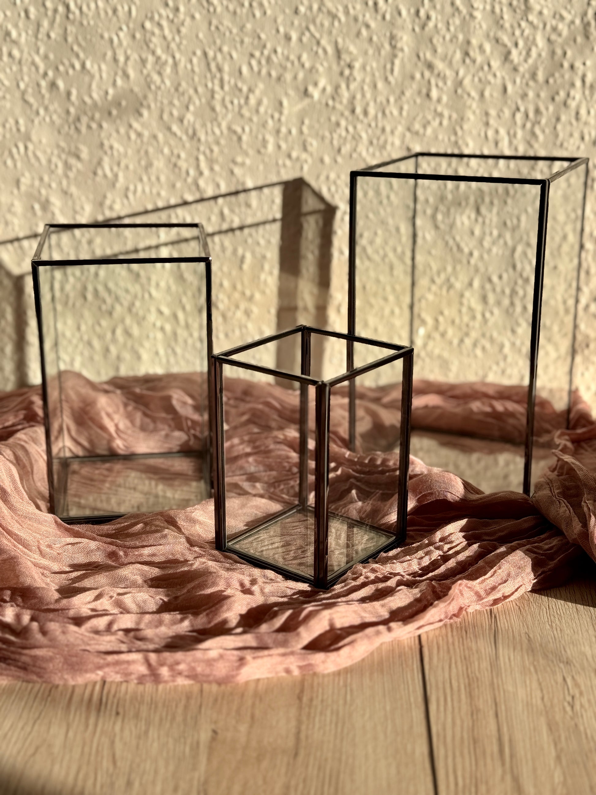 Unsere edlen Windlichter „Noctis“ aus Glas und Metall in Schwarz Metallic schaffen ein modernes, stilvolles Ambiente und setzen markante Akzente in deiner Dekoration. Das 3er Set eignet sich perfekt für elegante Dinnerpartys, Hochzeiten oder Firmenfeiern mit einem modernen Twist.